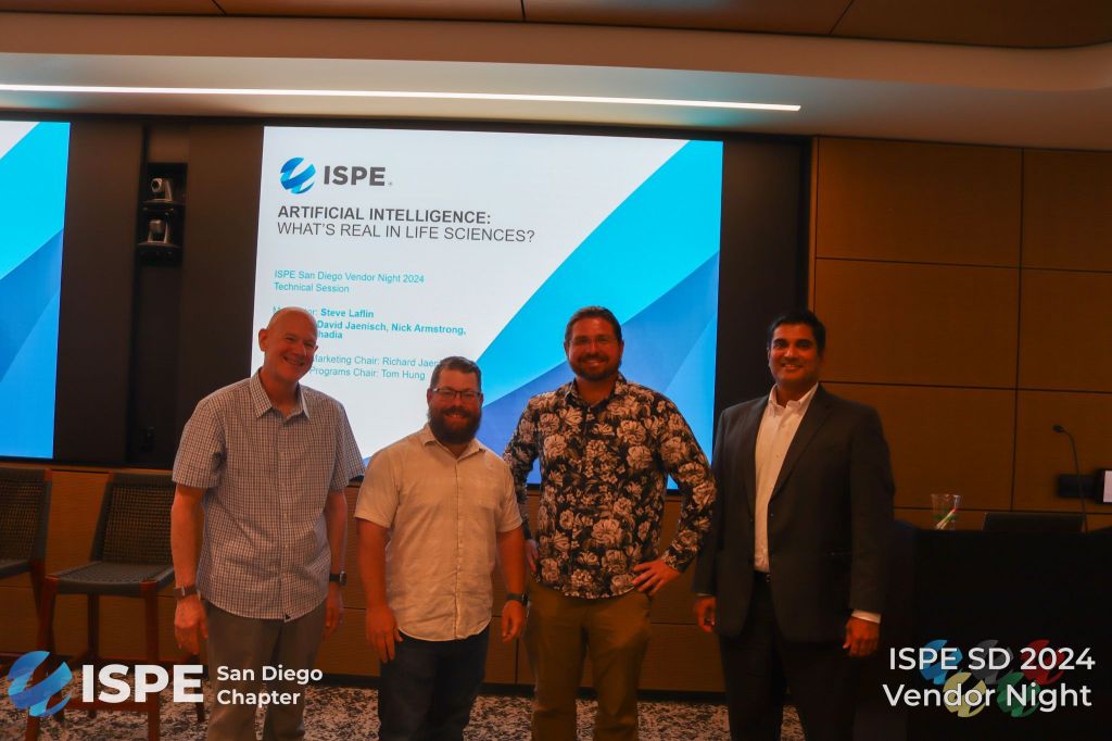 In August David headlined ISPE SanDiego’s Vendor Night talking about AI with Niraj Kachhadia of Rockwell Automation, Nick Armstrong of CAI and Steven Laflin CSP, FMP, SFP, CLSSBB, CSSBB, CSCM of Genentech with a primer on AI terminology from Richard.